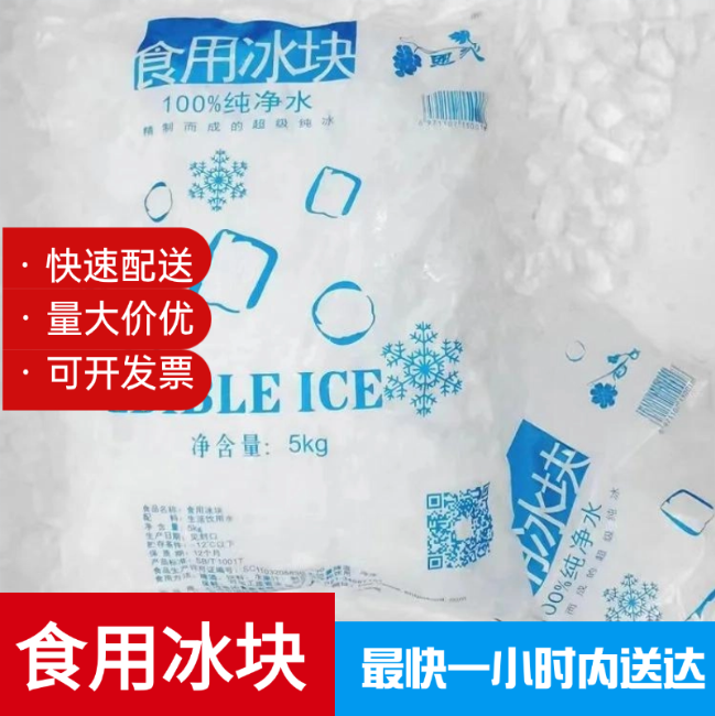 食用冰每袋10斤和20斤袋装(可食用)。卫生食用冰粒是消毒食用水在零下20度冷冻而成,可用于食用,冷冻,配饮料,酒店调酒,饮料冰冷,使酒,饮料冰凉,清爽,可口,经济适用,可口。